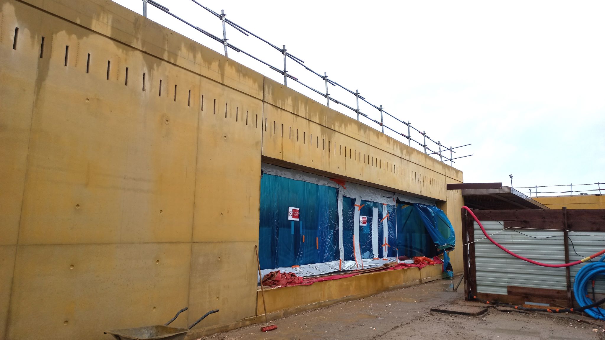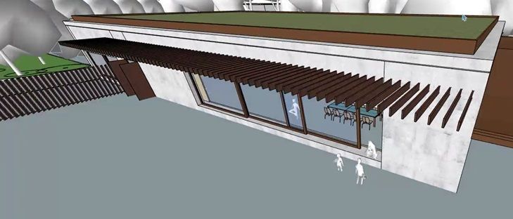 This project, designed by the Yoonseux Architectes agency and carried out by the Besnard & Chauvin team, a subsidiary of the group in charge of the work, is particularly innovative. This is a beam with a span of 13.30 m, relatively thin with a thickness of 20 cm and a height of 1.30 m, with 48 reservations to accommodate the blades of a sunshade. The 3 cm x 15 cm reservations are arranged every 20 cm.