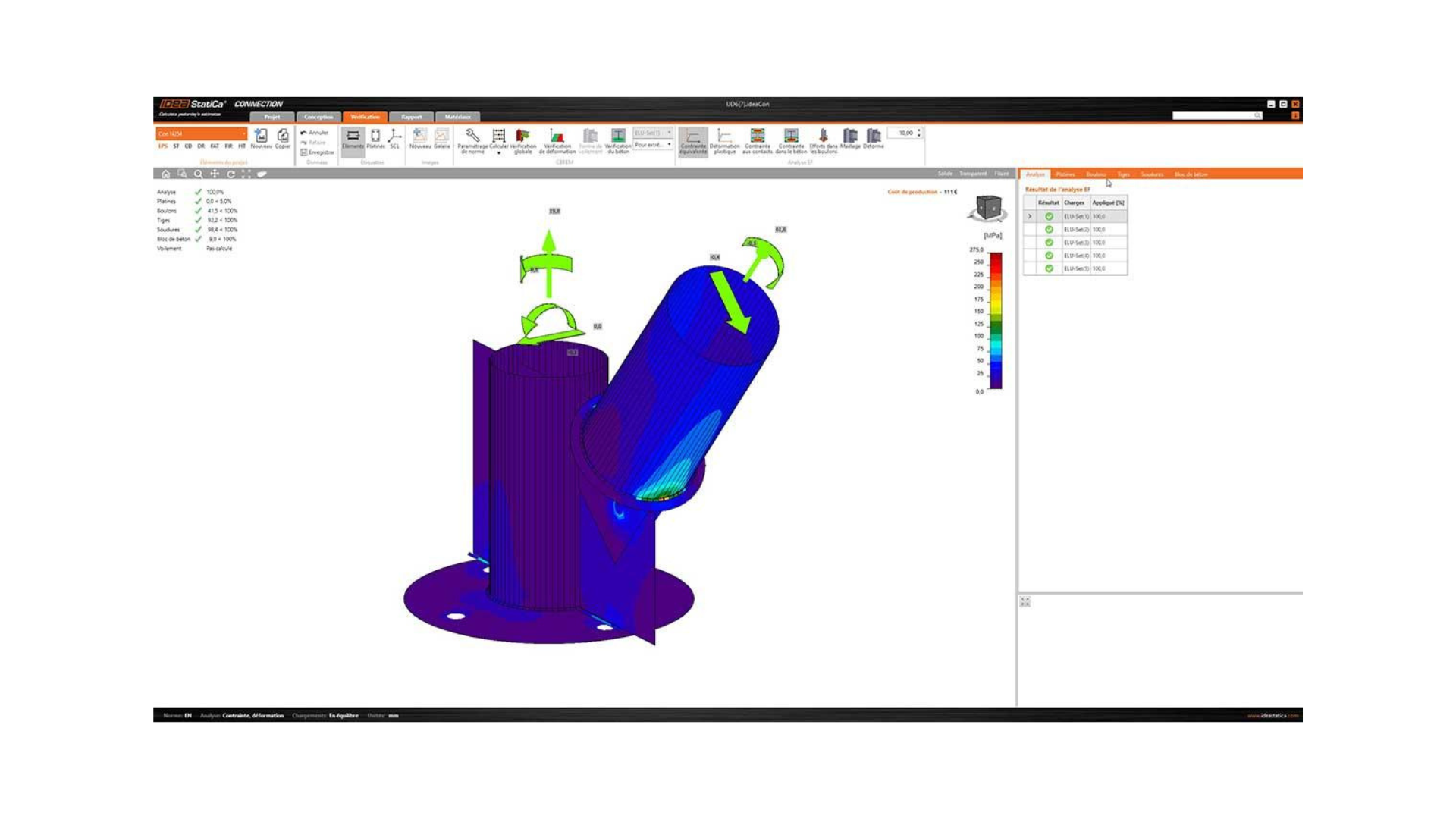 In this particular region, the importance of seismic effects cannot be underestimated. This is why the IDEA StatiCa software was used here. Certain connections were optimized using this software, notably the bases of tubular posts.