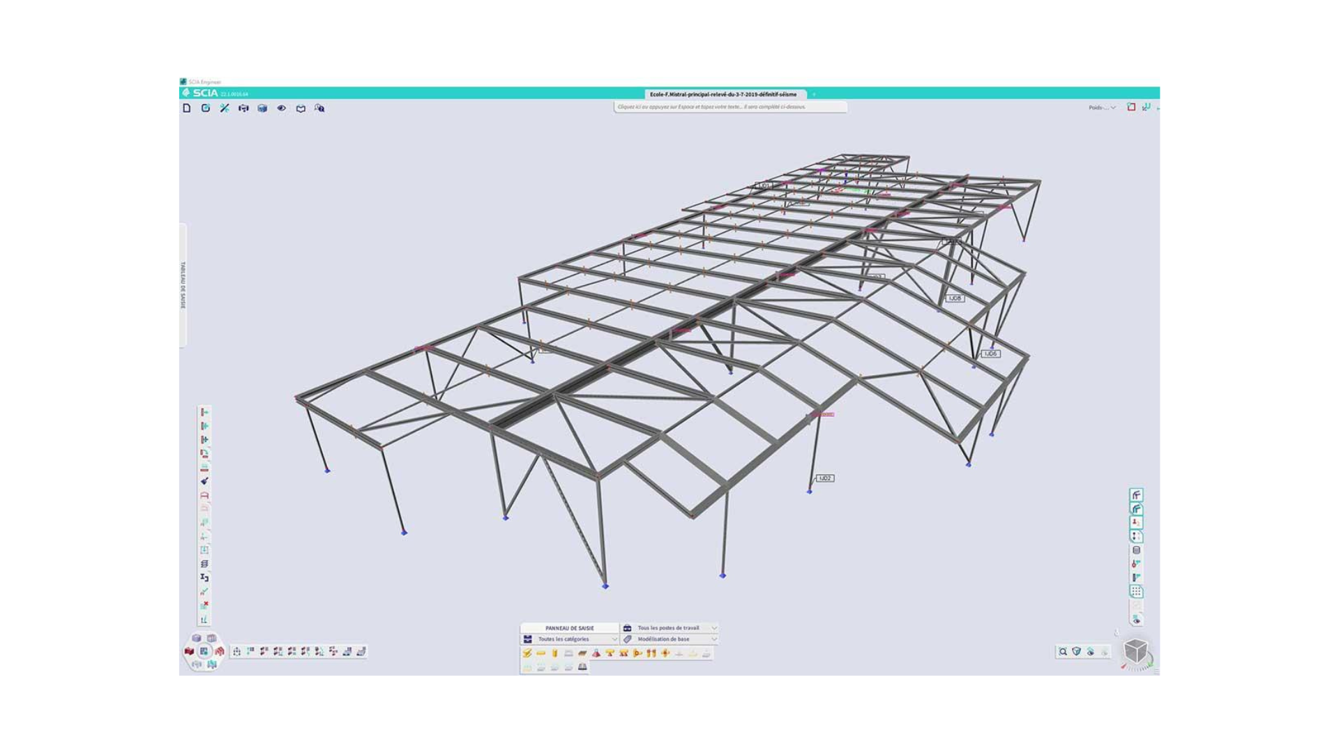SCIA ENGINEER was used to create the 3D model of the structure. This model was then calculated dynamically to take into account seismic conditions.