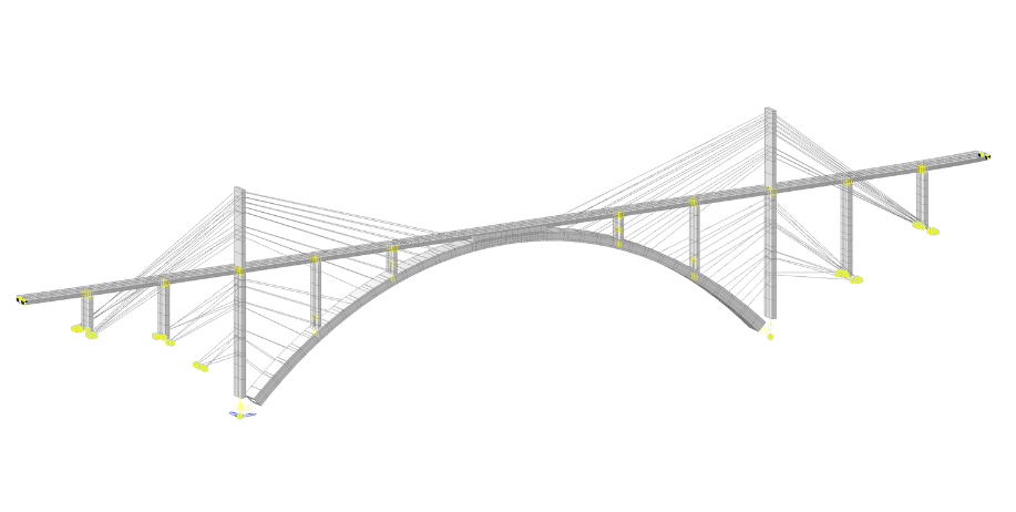 The arch is constructed as a suspended cantilever using temporary cable stays, which, due to the high number of construction phases, has led to a big data issue and increased the requirements of FEM and design software. For the design of each bearing part, IDEA StatiCa software was used, primarily using the BIM module and secondarily using the RCS module, when neglecting the construction phases was possible, allowing for shorter computing times.