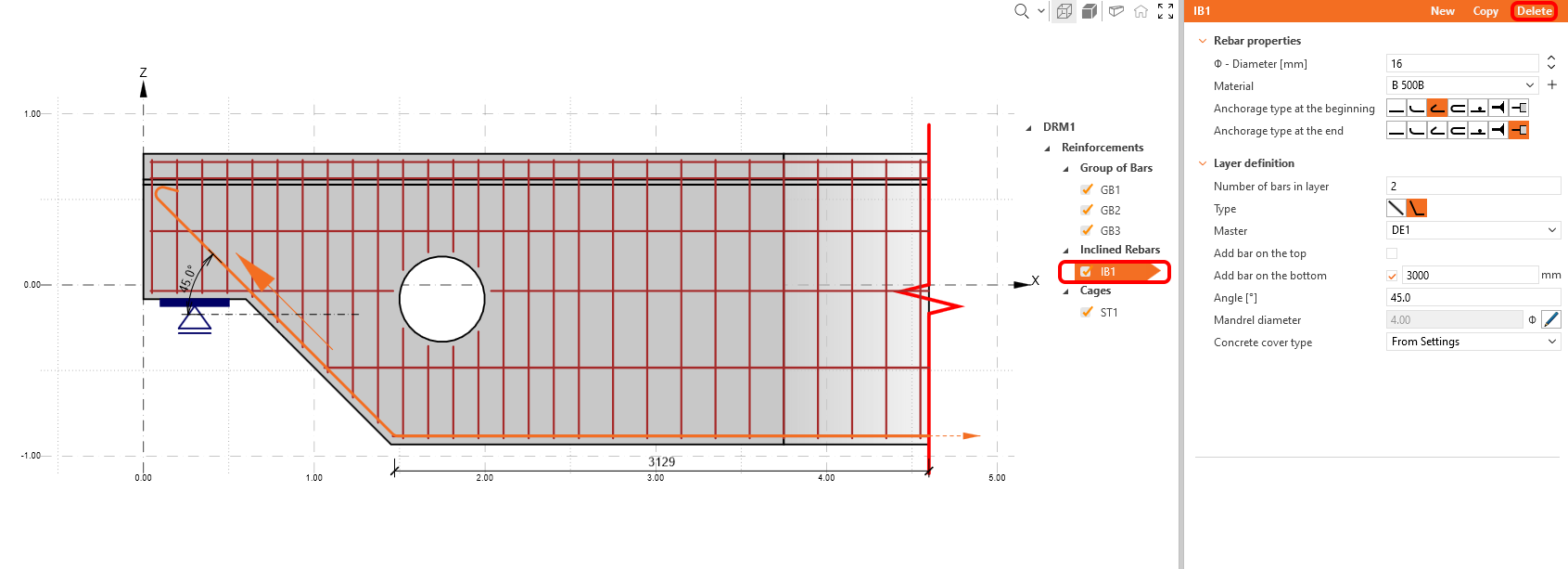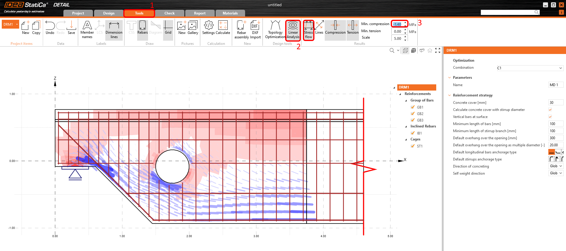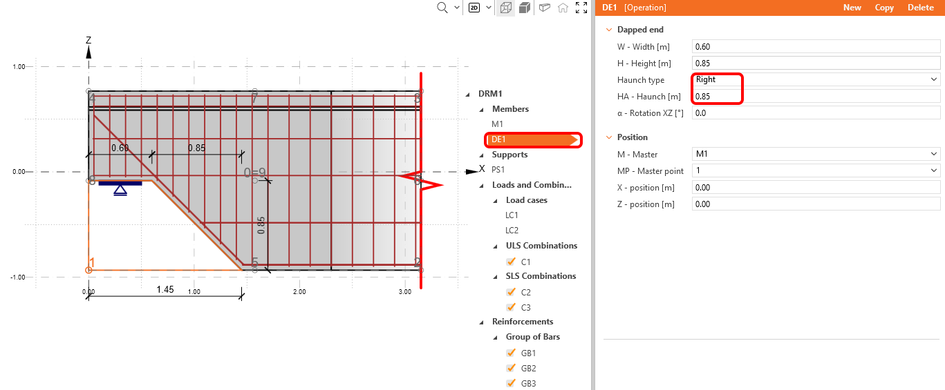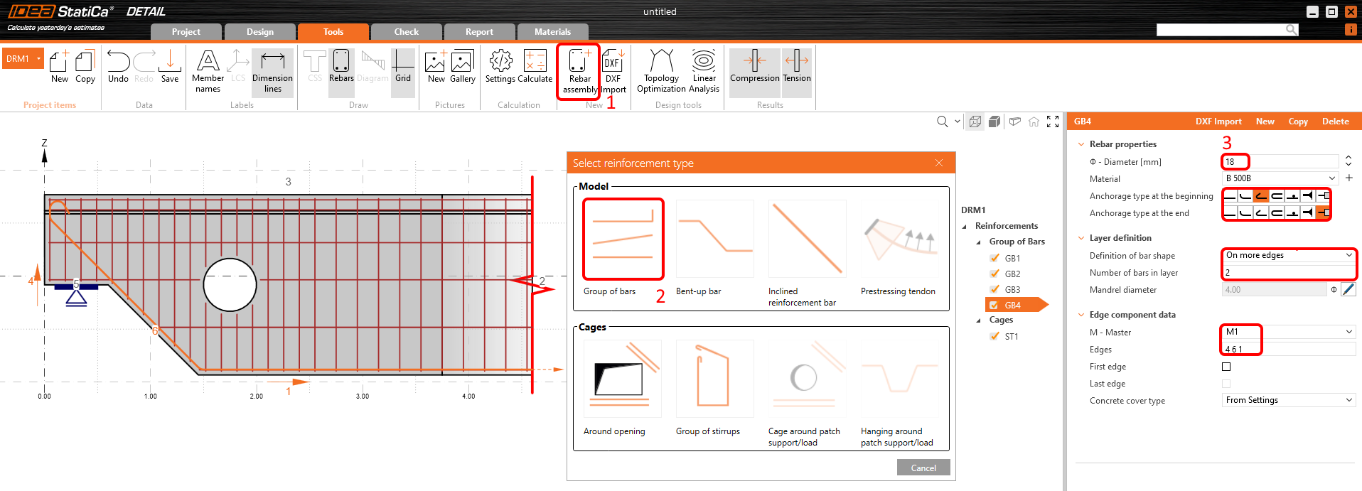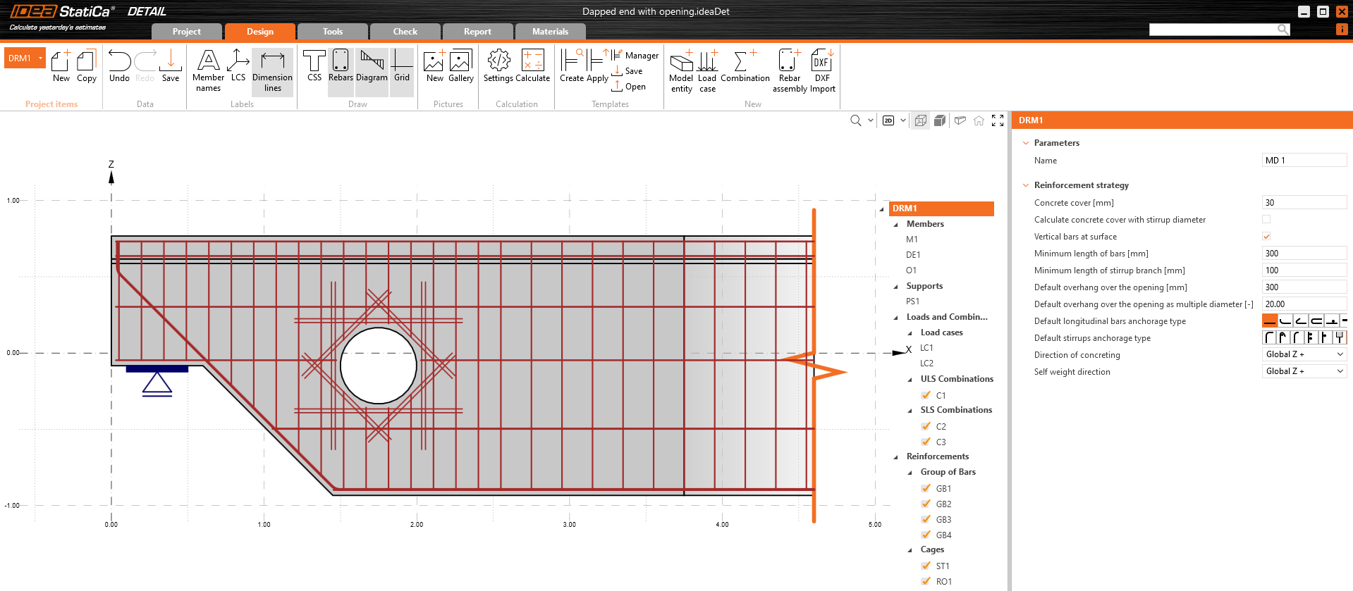 Para reforçar este modelo específico, comece com um modelo predefinido no IDEA StatiCa Detail e modifique-o. Antes de o fazer, gostaria de ver como reforçá-lo com base nos resultados das ferramentas de desenho.