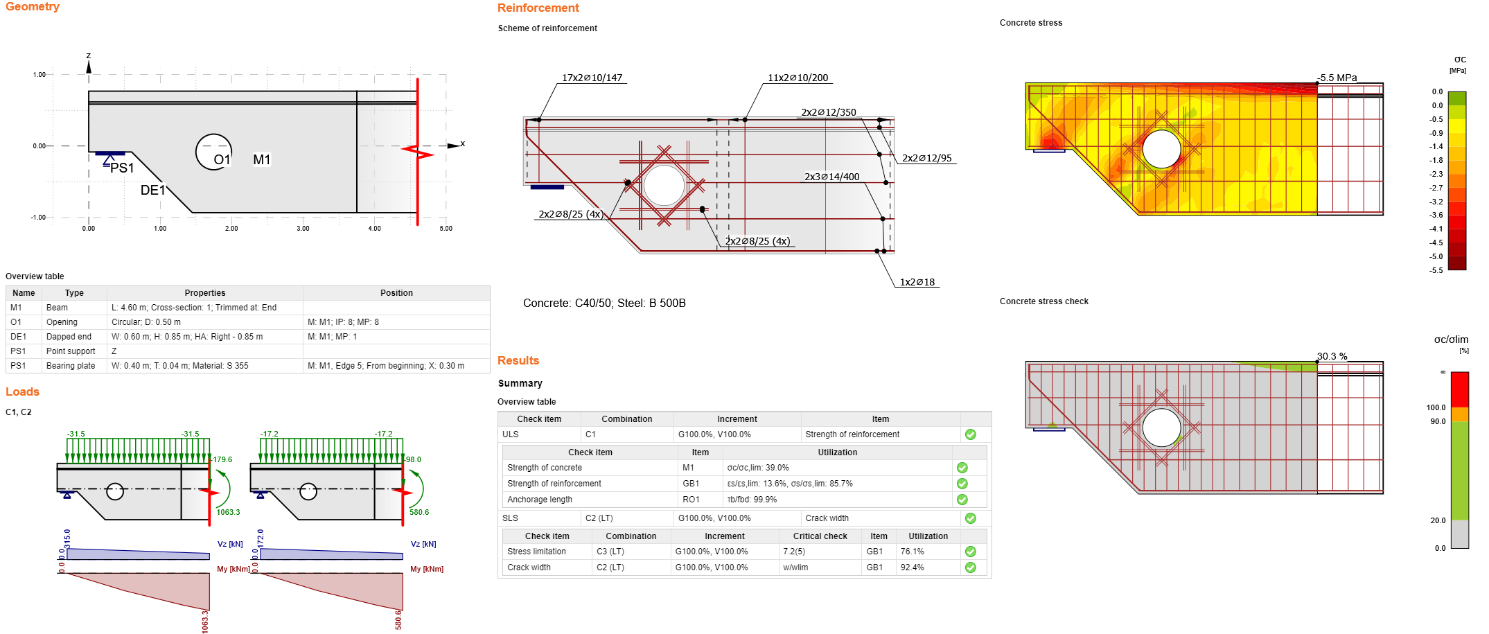 Concebeu, optimizou e verificou o código de uma extremidade com uma abertura de acordo com o Eurocódigo.