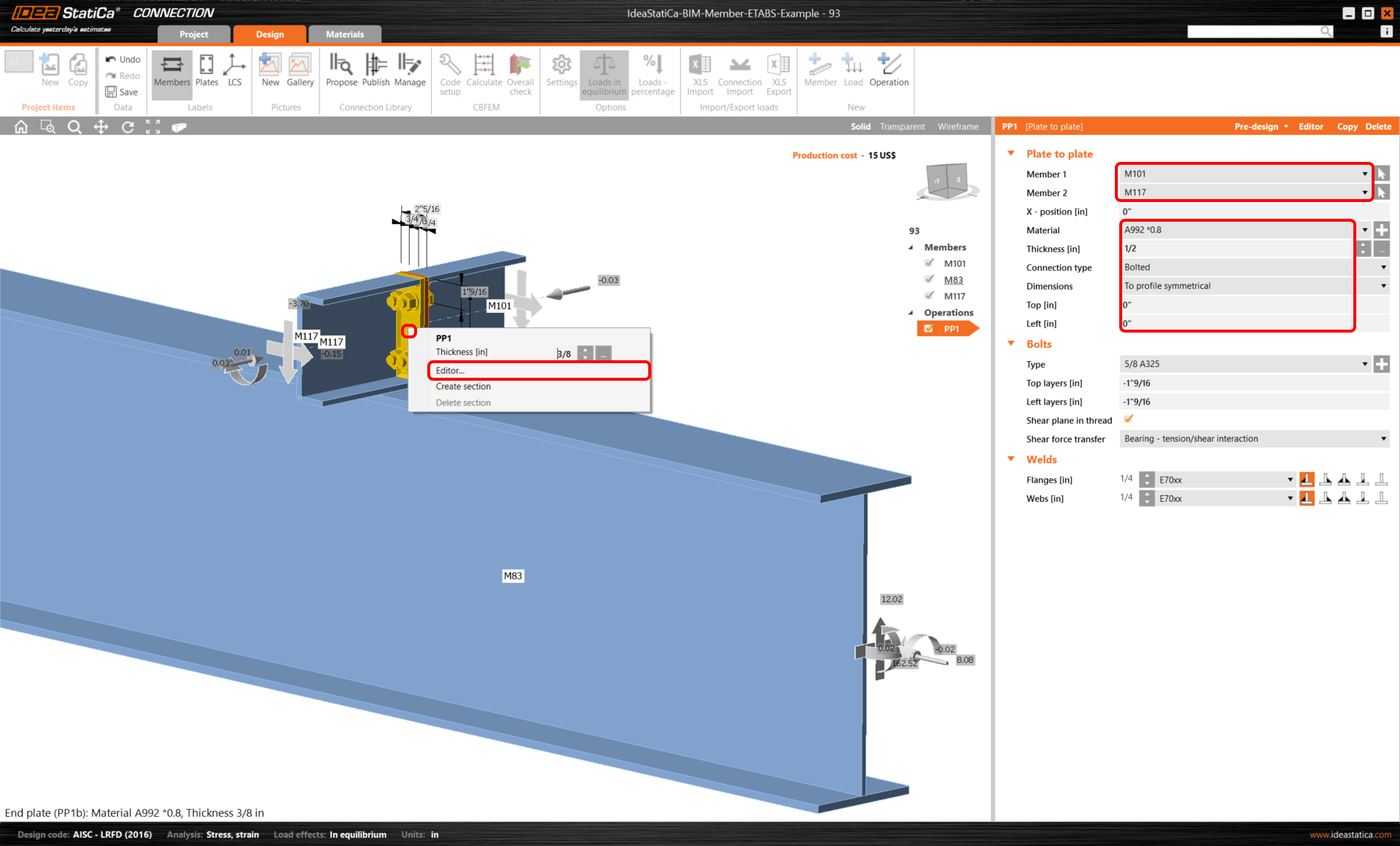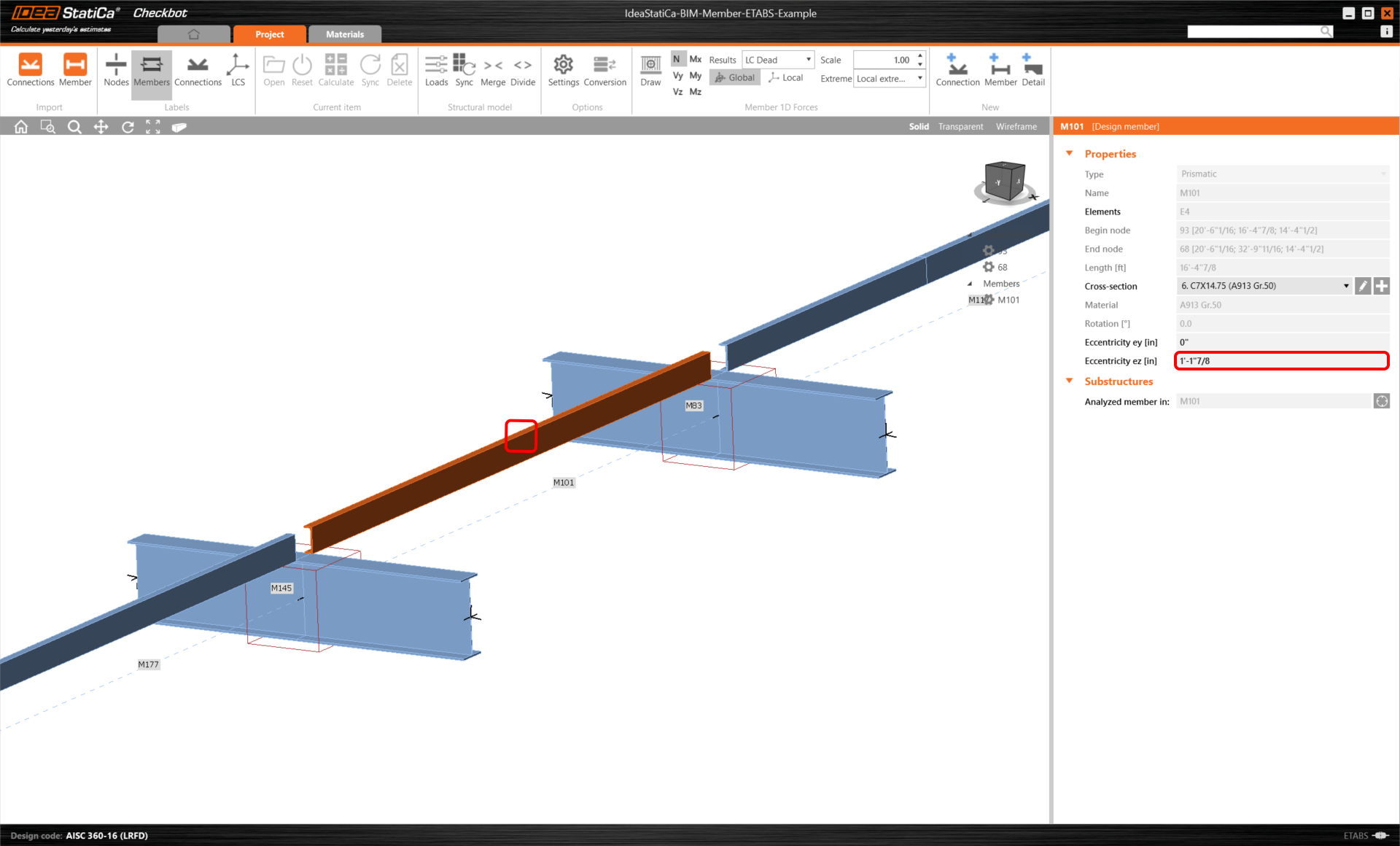 ETABS BIM link for steel Member design (AISC)