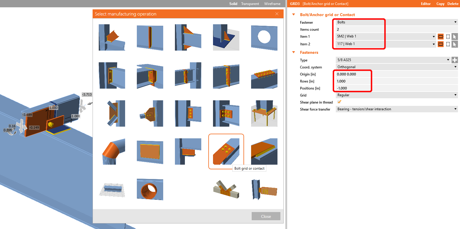 Add the operation Bolt/Anchor grid with the following values.