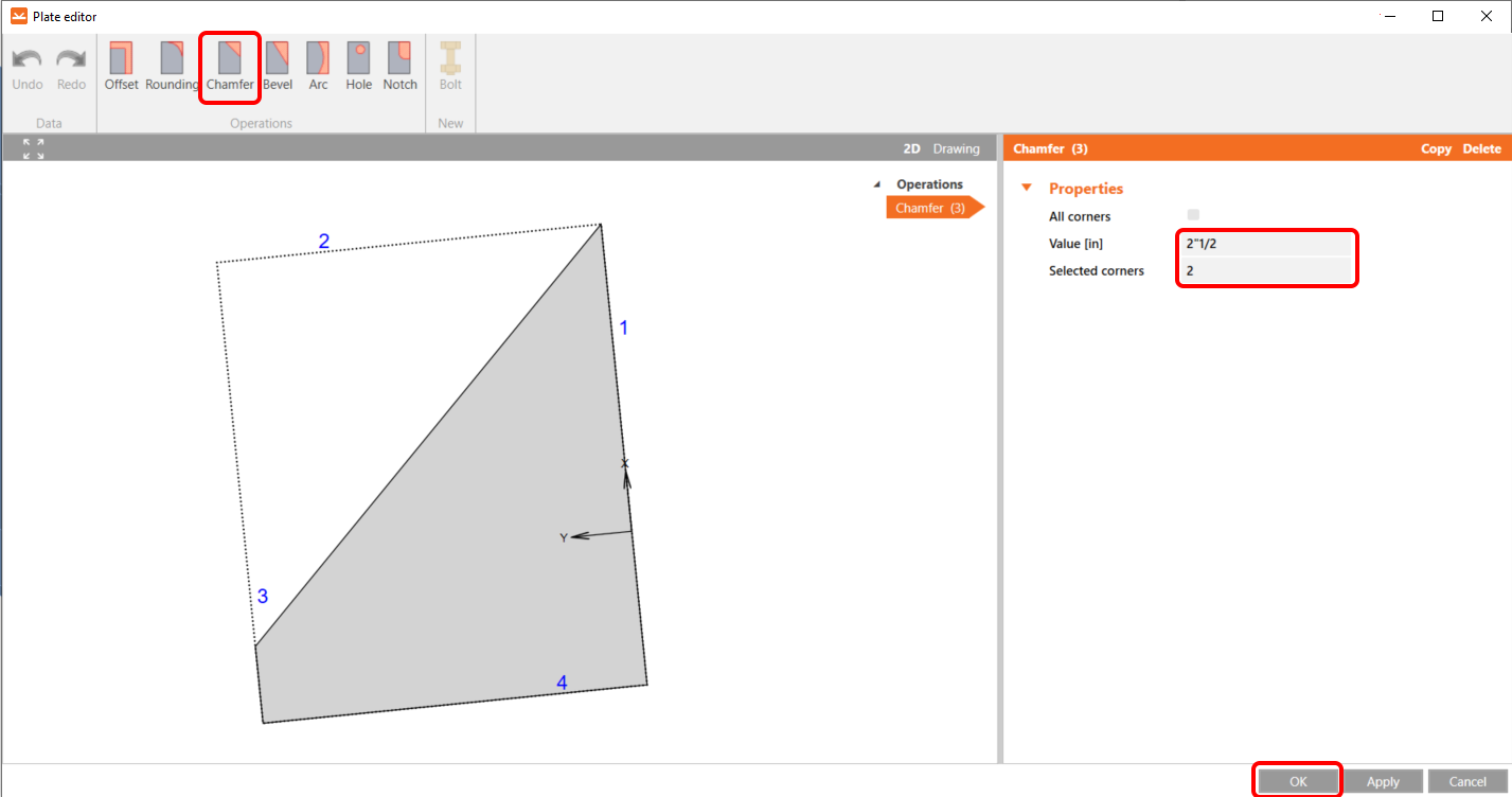 After that, In the Editor, make changes using the chamfer operation, and set it up according to the image.