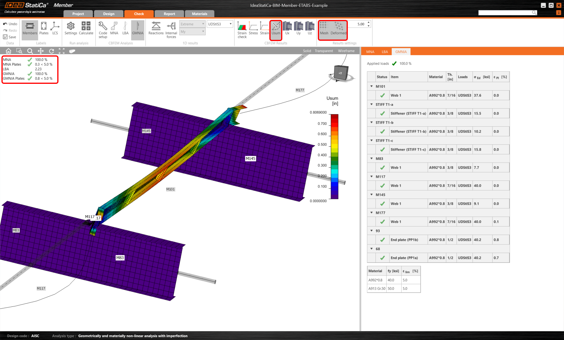 This result shows the necessity of running the GMNIA (geometrically and materially non-linear analysis).