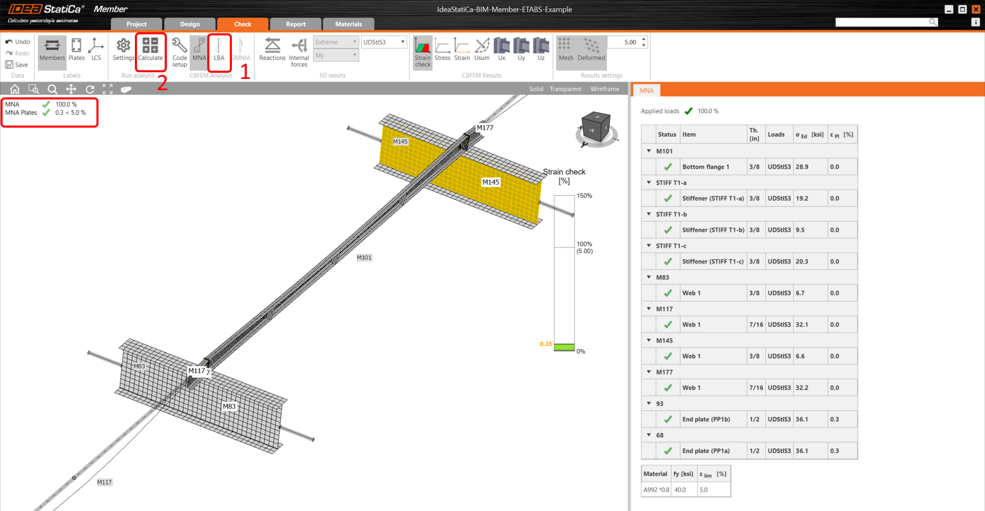 After that, you will see the result of the calculation, then select the tab Check and first click on the LBA button, consequently Calculate.