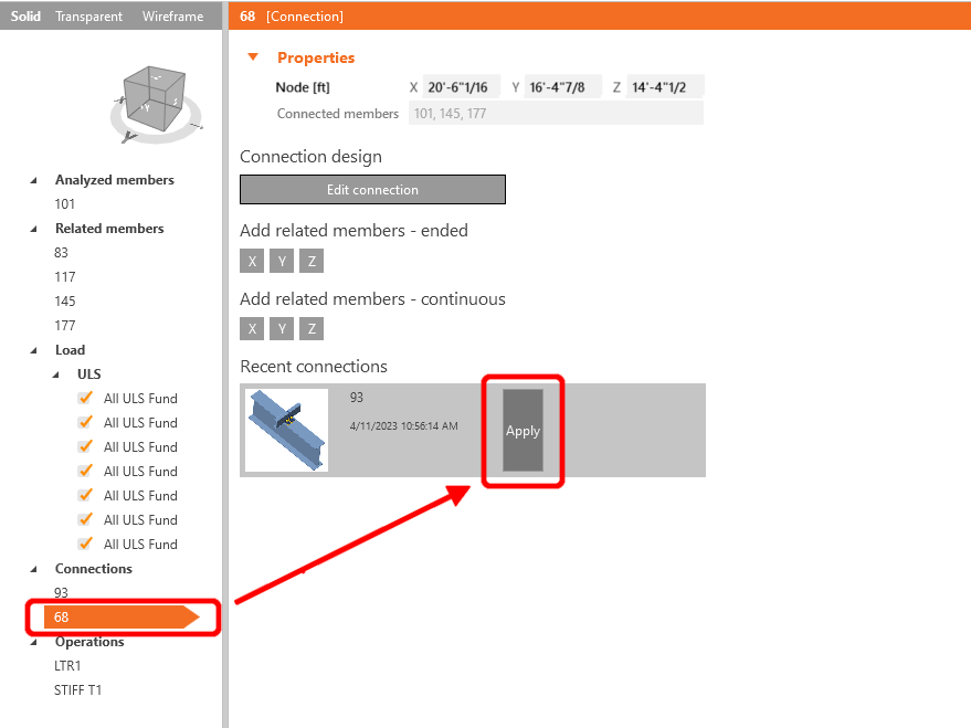 As we have similar joints on both sides of the member, you can copy the operations from the first joint to another. Select another joint, then click Apply.