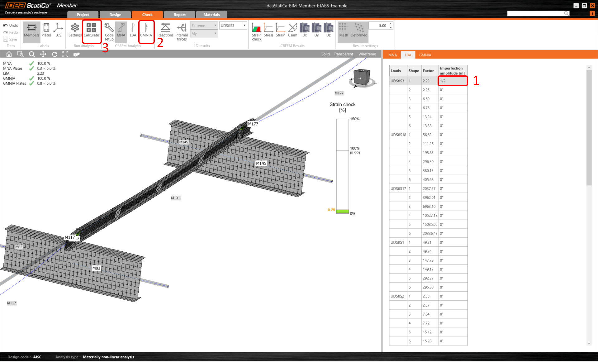 The second analysis is LBA (lateral buckling analysis), where we get a critical factor of less than 15.