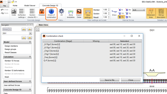 Another improvement is helpful while trying to find missing or redundant load cases in combinations. E.g., if the permanent load case is included in combination prescription but is not to be found in any of construction stages, we might get wrong values or the combination won´t be taken into account (marked as incorrect). It can be accessed in Reinforcement tab before the export to RCS.