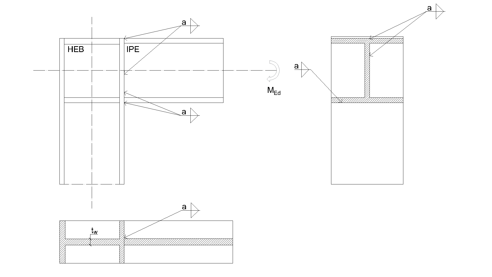 • Beam web: fillet weld throat thickness aw  = 8 mm