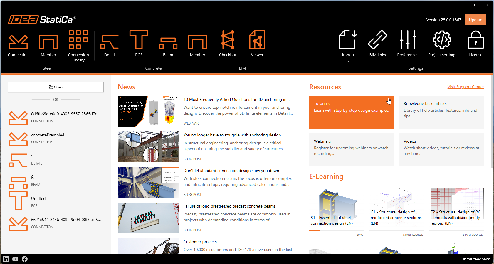A refreshed visual style has been applied across all IDEA StatiCa 25.0 apps, offering a consistent interface aligned with the completely new starting app - IDEA StatiCa Launcher!