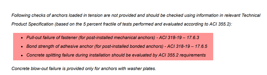 Once you run the analysis, you can observe the forces on the anchors and the code checks. However, as the report shows, the post-installed anchors: