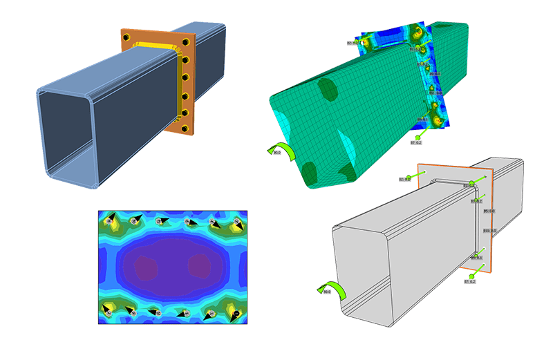 Nu există nicio limită în numărul de grinzi, șuruburi, suduri și plăci în conexiunile dvs. Efectuați cele mai comune topologii în câteva secunde și continuați să editați șabloanele de conexiune chiar în scena 3D. Definiți forme pe baza proiectului dvs. - nu pe ceea ce poate gestiona software-ul dvs.! IDEA StatiCa proiectează, calculează, verifică și gestionează automat modelul de calcul.