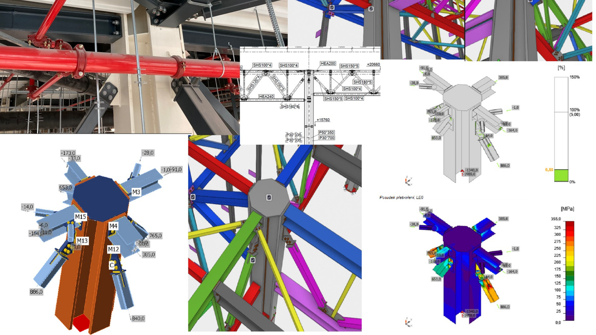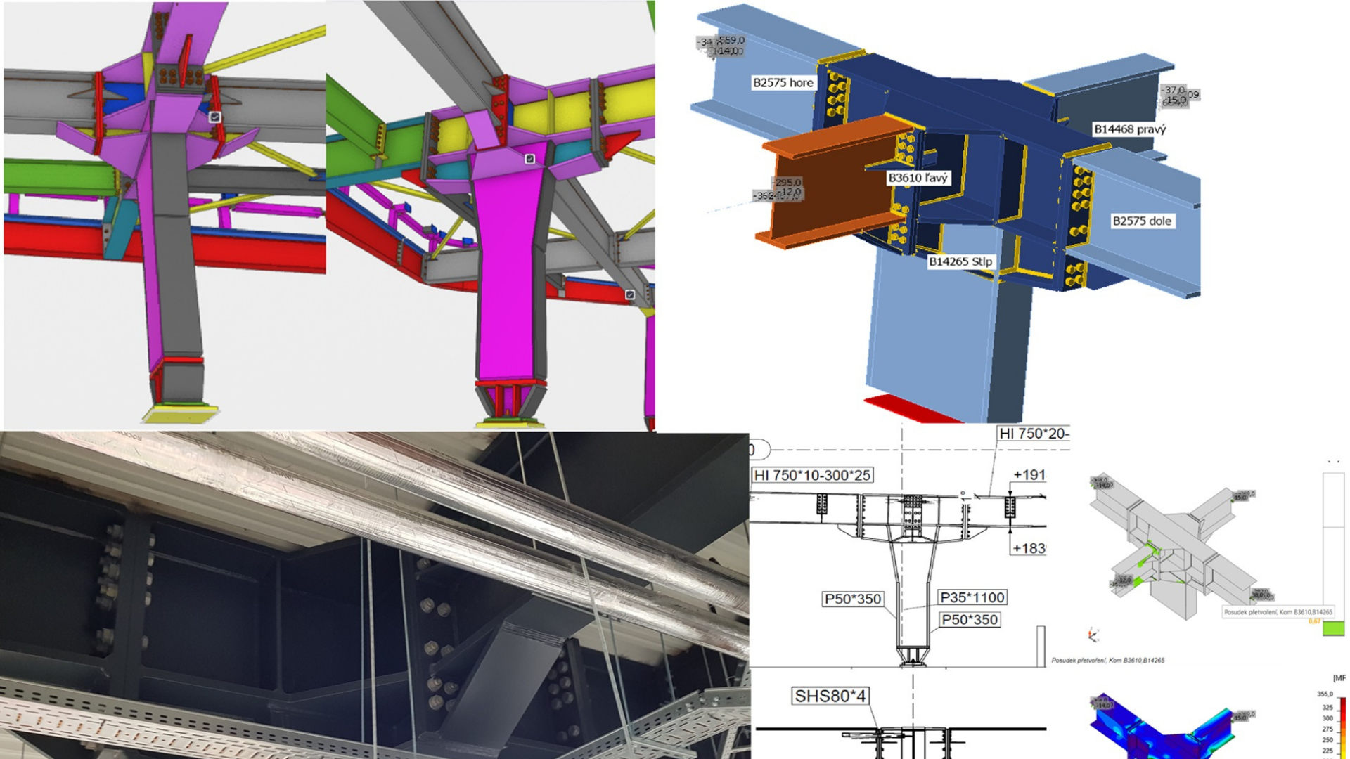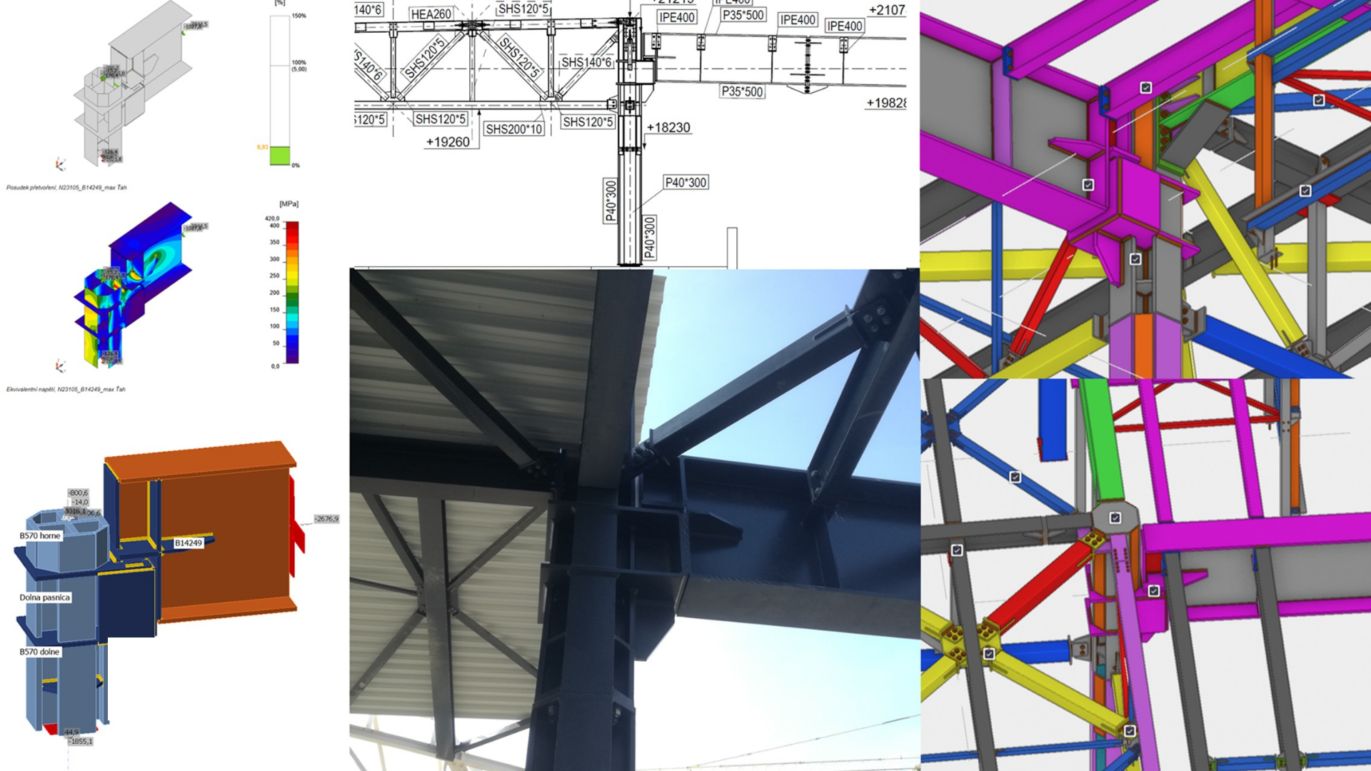 In the three connections presented, there are different connections to the columns. The first is a joint connection where no bolts or welds were used for connecting. The second one is a huge frame connection. The last one is an interesting solution for connecting several elements to a column.