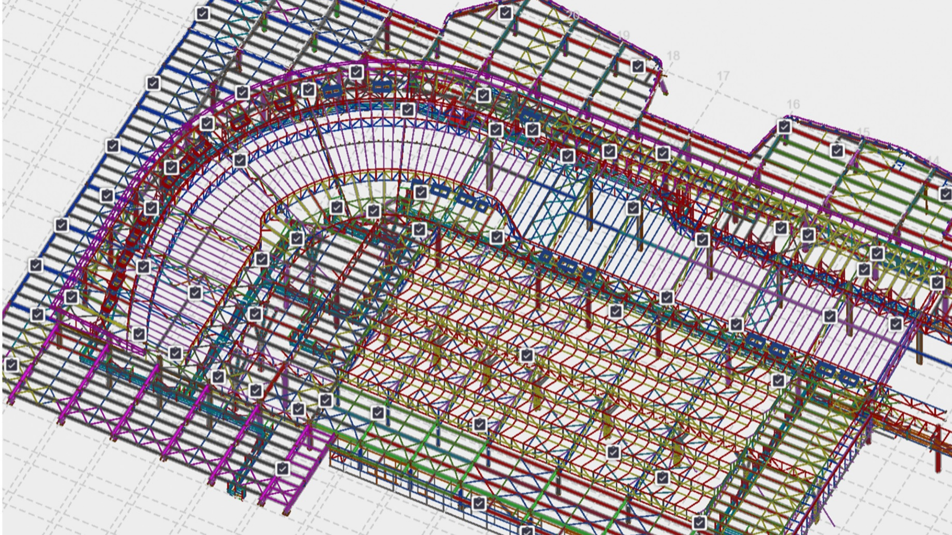 It uses 2,500 tons of steel structures to form the main roof in the upper part and the green roof built up from composite steel-concrete elements in the lower part.