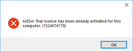 ActSvr: Trial license has been already activated for this computer. (1234567890)
