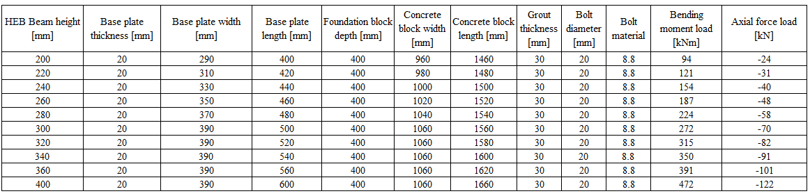 \[ \textsf{\textit{\footnotesize{Tab. 10.3.1 Examples overview(Variable column HEB beam height)}}}\]
