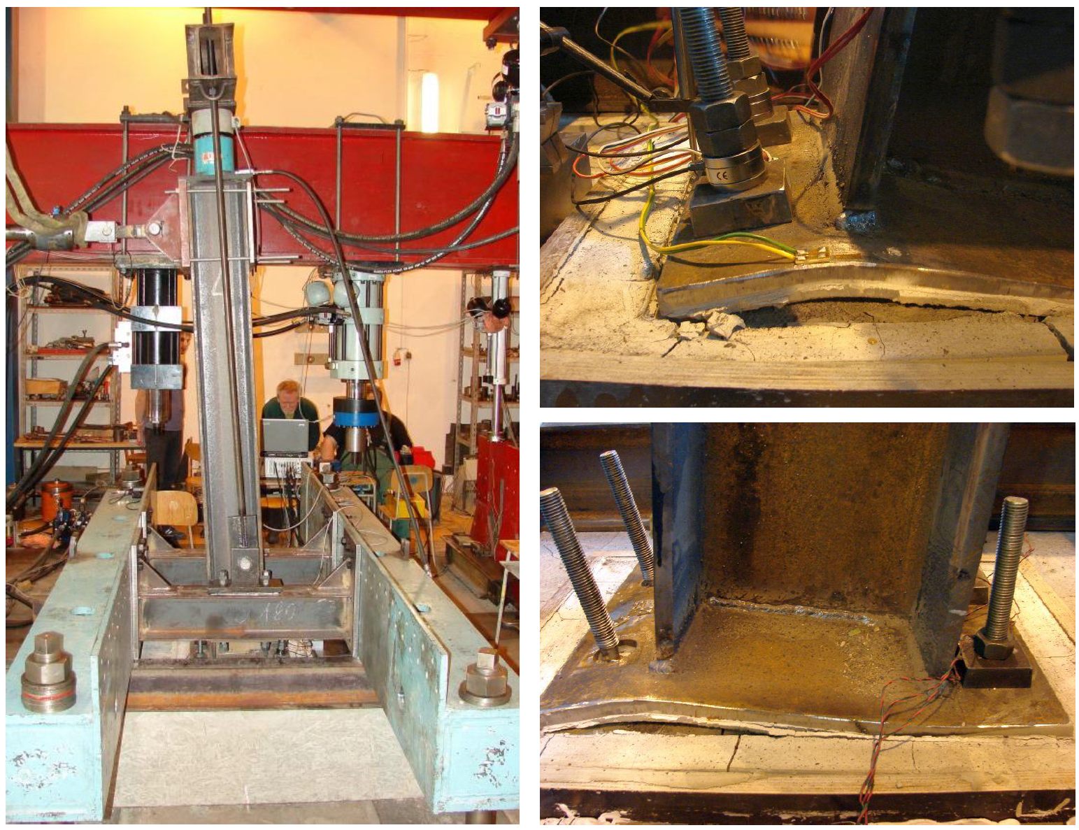\[ \textsf{\textit{\footnotesize{Fig. 10.3.1 Test set-up and deformed base plate and anchor bolts}}}\]
