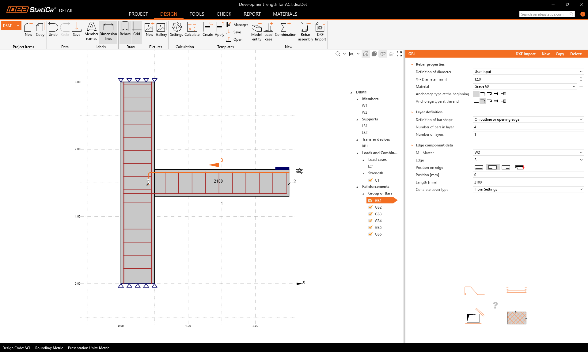 Development length in IDEA StatiCa Detail (Metric)