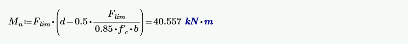 We can also see that the Flim at the critical section is 118.1 kN. If we replace the As x fy items with Flim in the formula for calculating Mn, we get the theoretical moment capacity, which corresponds to the result from the application.