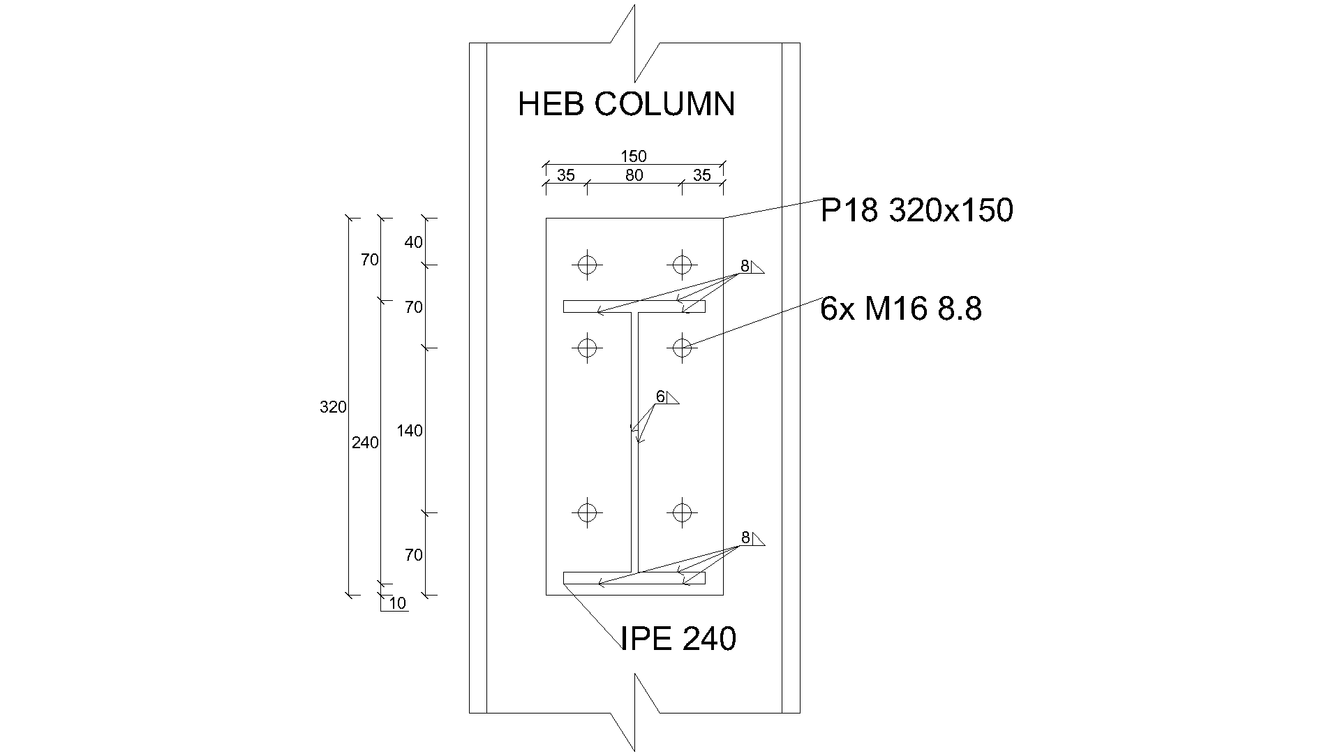 The benchmark case is prepared for the end plate minor axis connection according to Fig. 5.3.1 with modified geometry as summarized below.