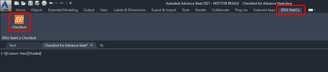 When you open Autodesk Advance Steel, there is a new tab IDEA StatiCa added to the top ribbon containing the Checkbot command.