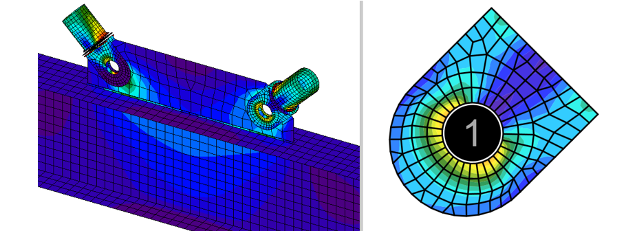 The mesh in IDEA StatiCa Connection is generated automatically. The user can only adjust the mesh size, this avoids certain cases where the mesh might not be generated appropriately, leading users to attempt to set up a very fine mesh. To prevent this adjustment impacting the mesh for the entire model, causing other issues with the calculation or the default meshing around particularly large holes in relatively small plates, such as those used for pins, being inaccurately configured, the meshing algorithm ensures that the resulting mesh is accurate: