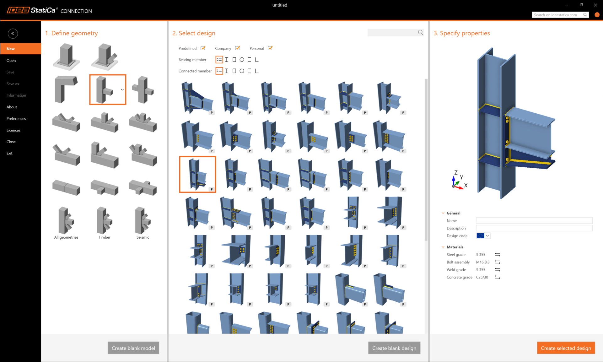 In the Connection app, the Connection Library with parametric templates has been integrated into the new starting wizard. Parametric templates can also be combined with single operations.