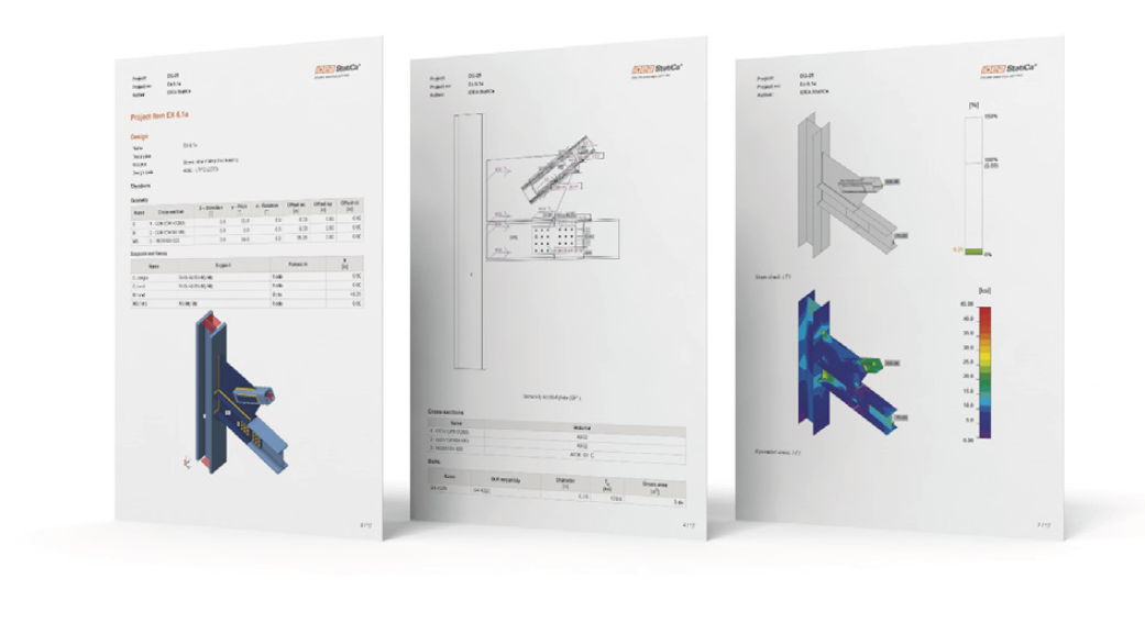 In addition to this, you will need to export all the calculations in a readable and presentable document. IDEA StatiCa will create that for you, too. Simply choose what information you would like to include, and the report will be created immediately. Fully customizable, including all equations and visuals to support your work.