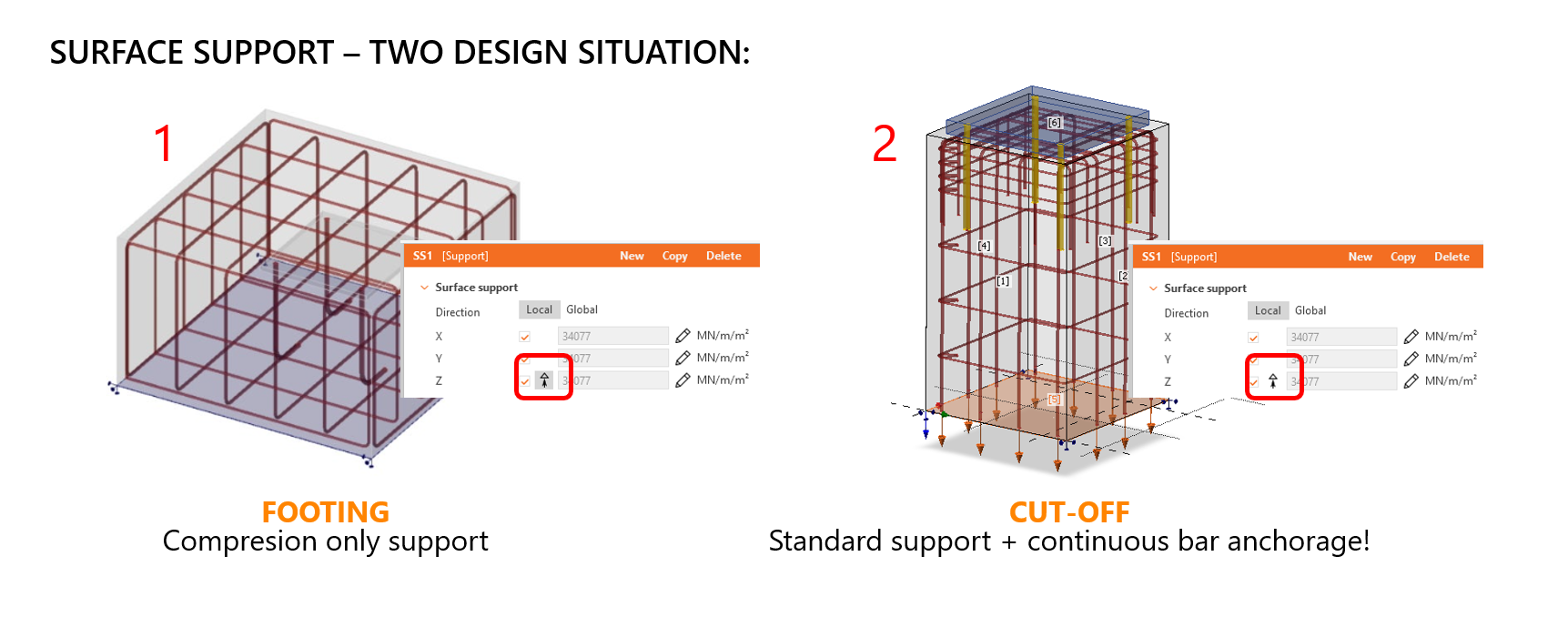 1) Use default compression-only support for footings resting on ground, but remember to manually apply self-weight, as it's not exported from IDEA StatiCa Connection.