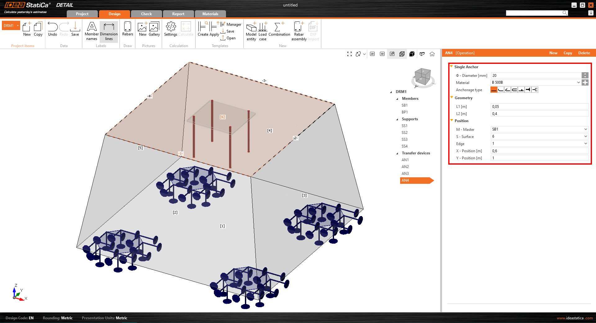 IDEA StatiCa introduces Detail (3D Beta) for solving 3D tasks such as anchoring in concrete blocks. The solution lets you perform the design without oversimplification and obtain checks based on the Ultimate Limit State (ULS). The method implemented in IDEA Statica Detail (3D Beta) is based on the already proven Compatible Stress Field Method, which was adjusted to be able to solve 3D problems (tri-axial stress). Also, the basic element is modified to the third dimension. The solid block is the basic element representing concrete and can be deformed in all three directions. To make it possible to create a complex model for footings, we have implemented entities such as surface support, base plate, anchors, and more. All these entities are described, as well as their functionality, in the following article.