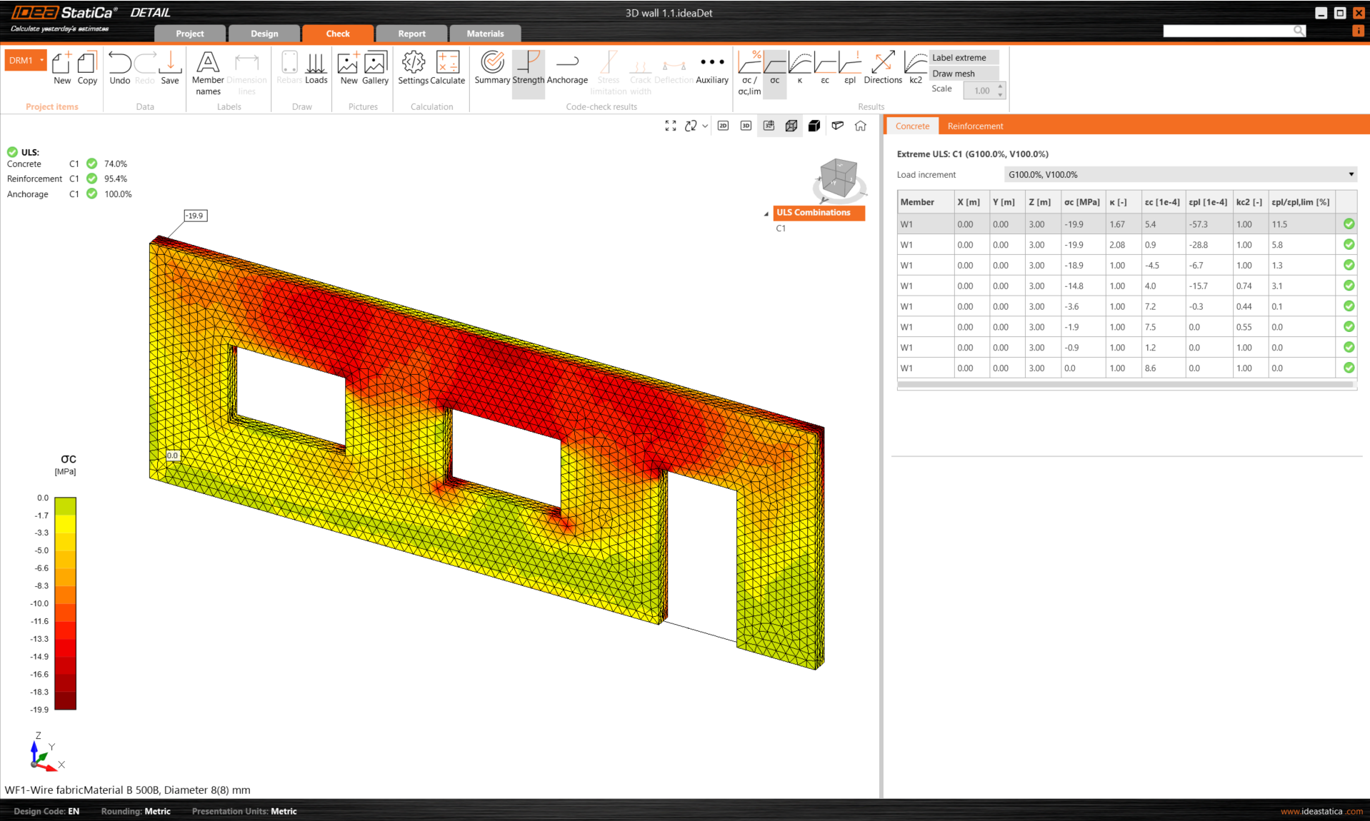 In the Results section, you will see three basic evaluations that are in line with the ULS criteria (ultimate limit state).