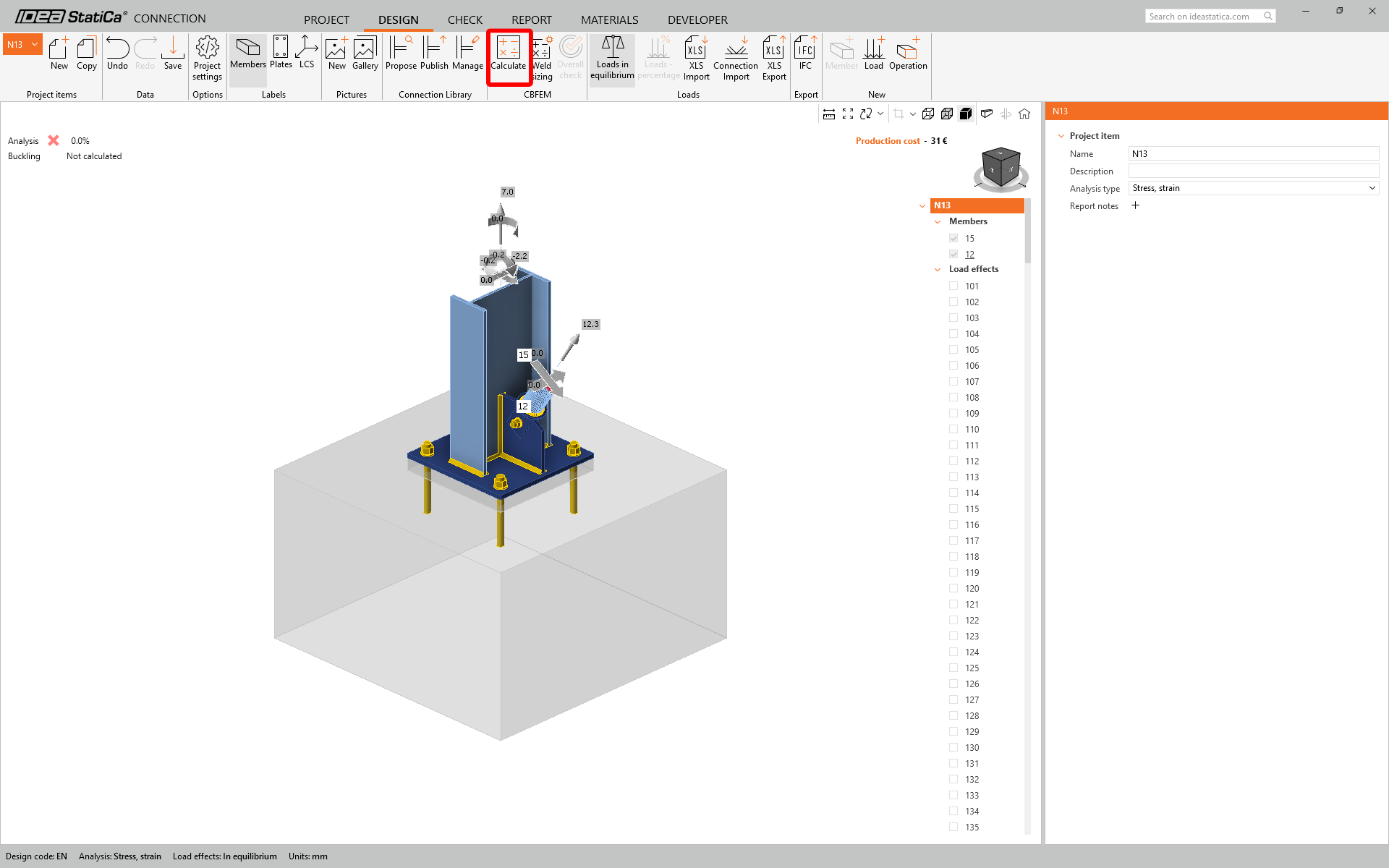 Now run a code-check using the Calculate icon in the CBFEM panel from the top ribbon.