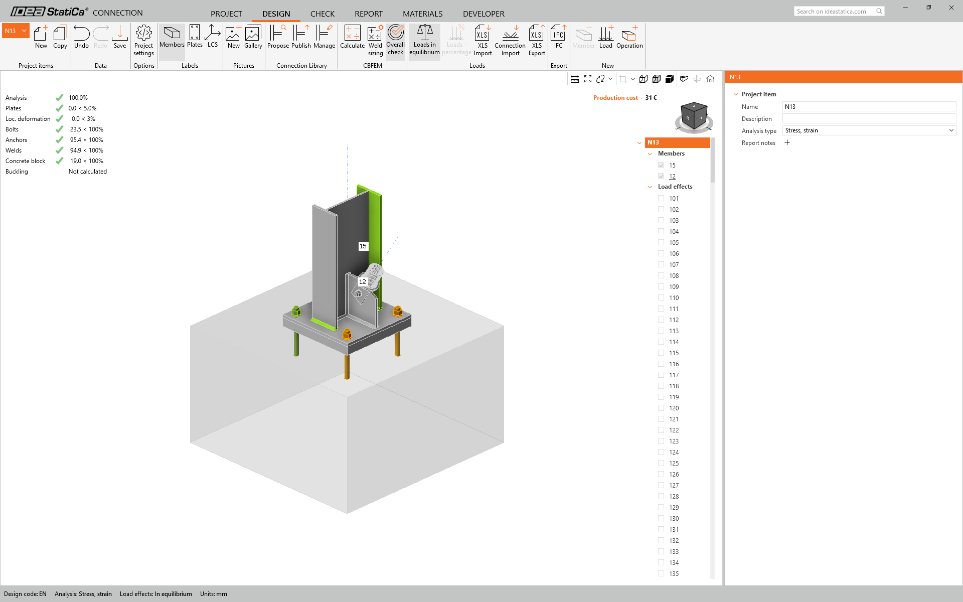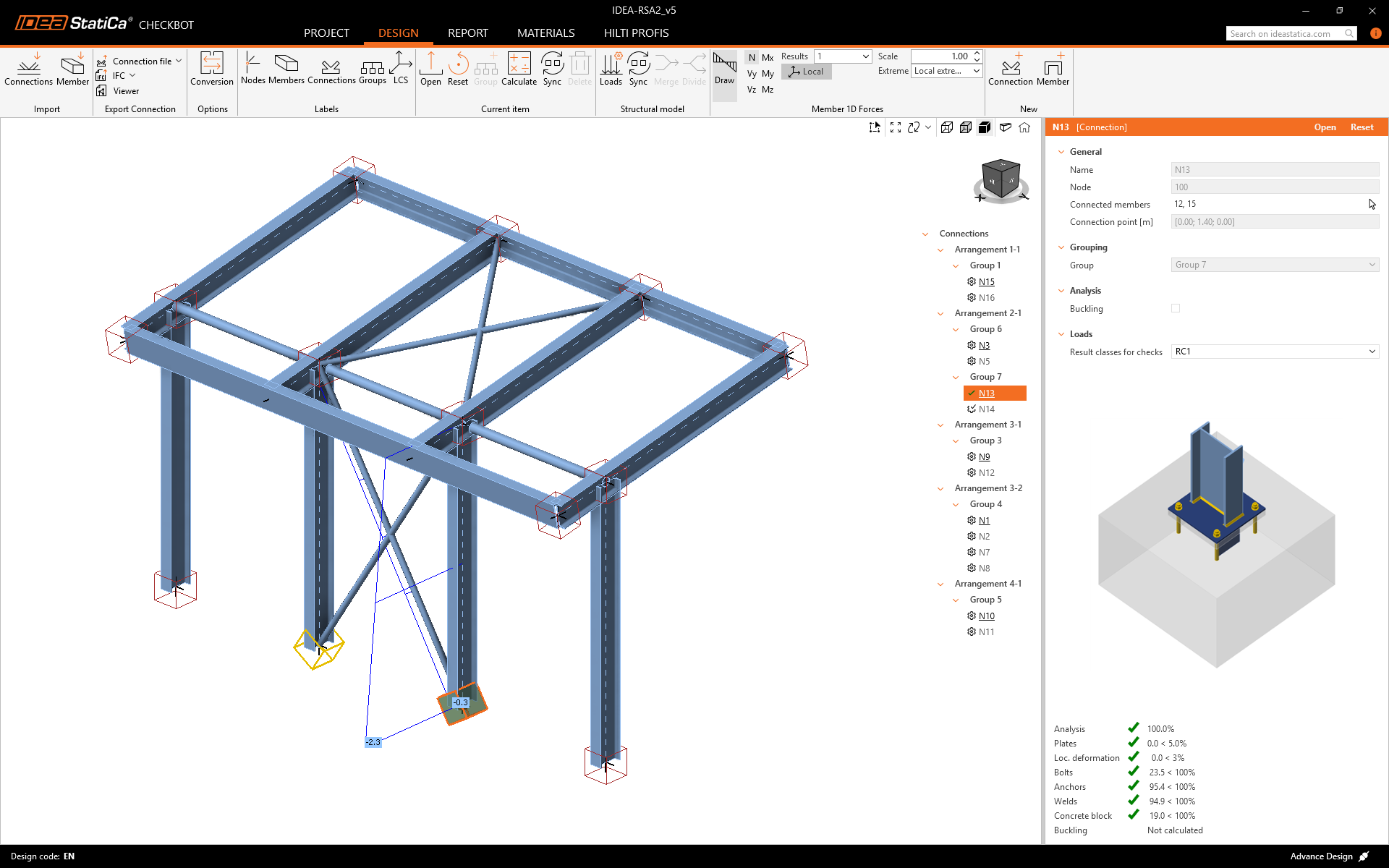 Click on Open  to start designing, code-checking, and reporting. The imported connection is opened in the IDEA StatiCa Connection application.