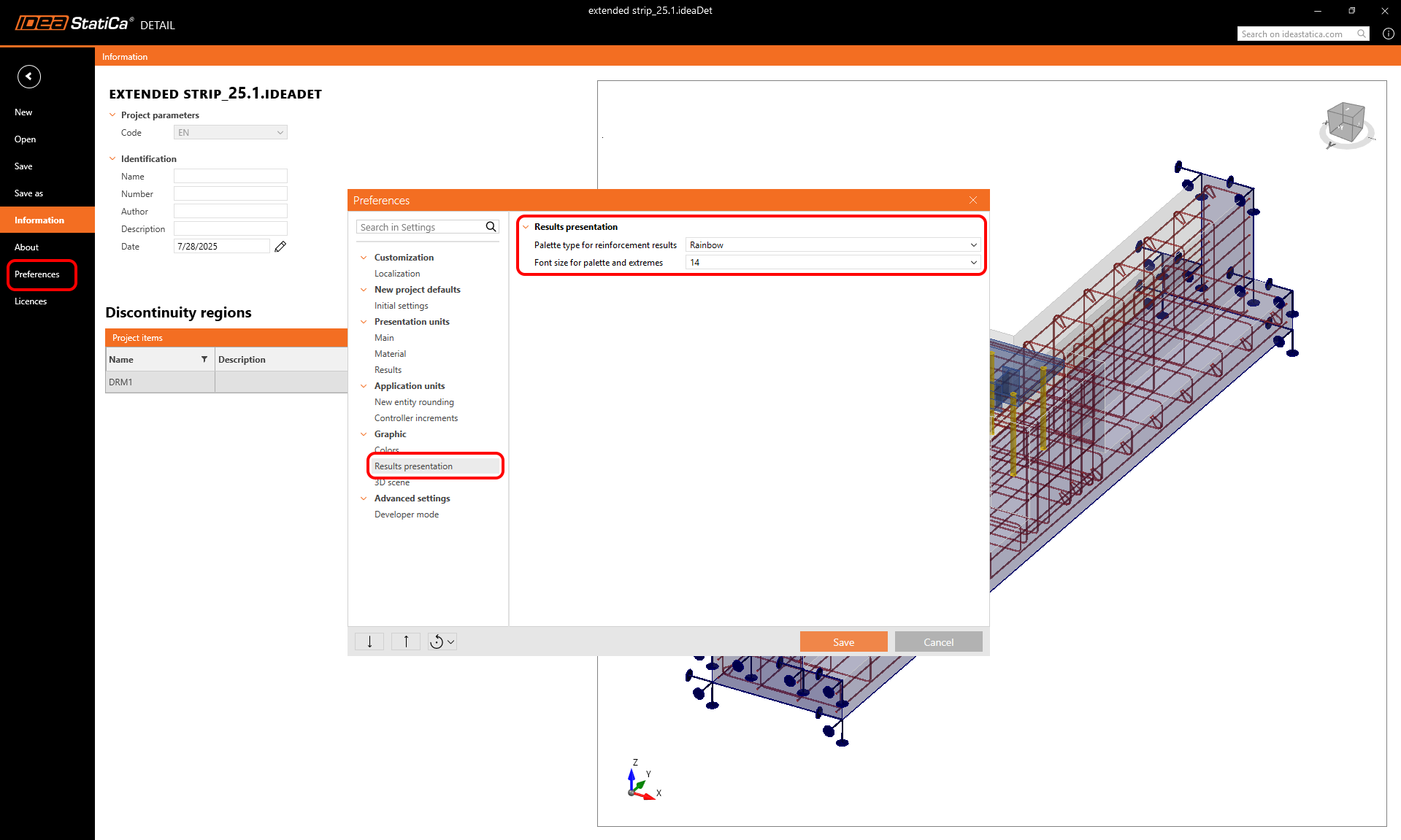 For displaying reinforcement results, it is possible to choose between so-called rainbow coloring or red-and-blue coloring (which distinguishes between tension and compression).