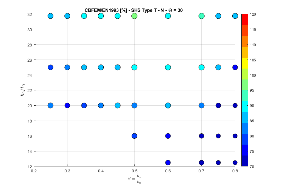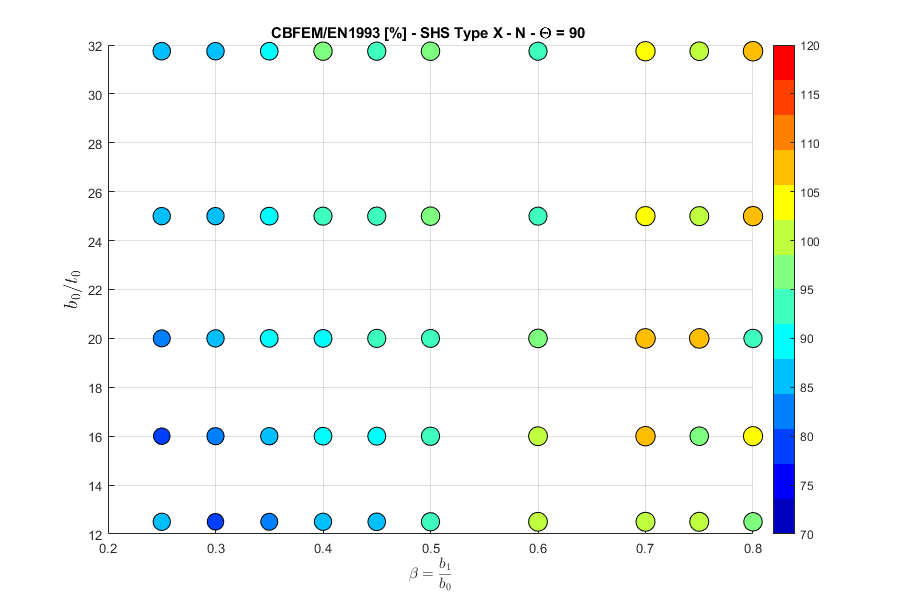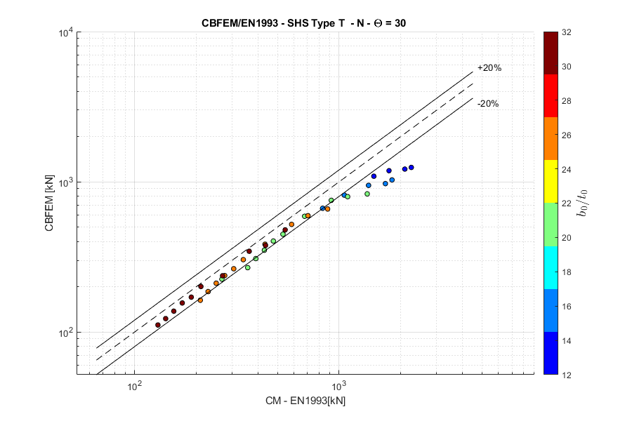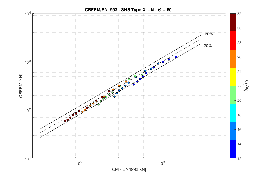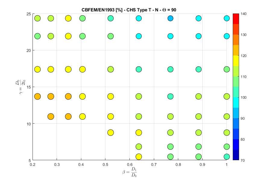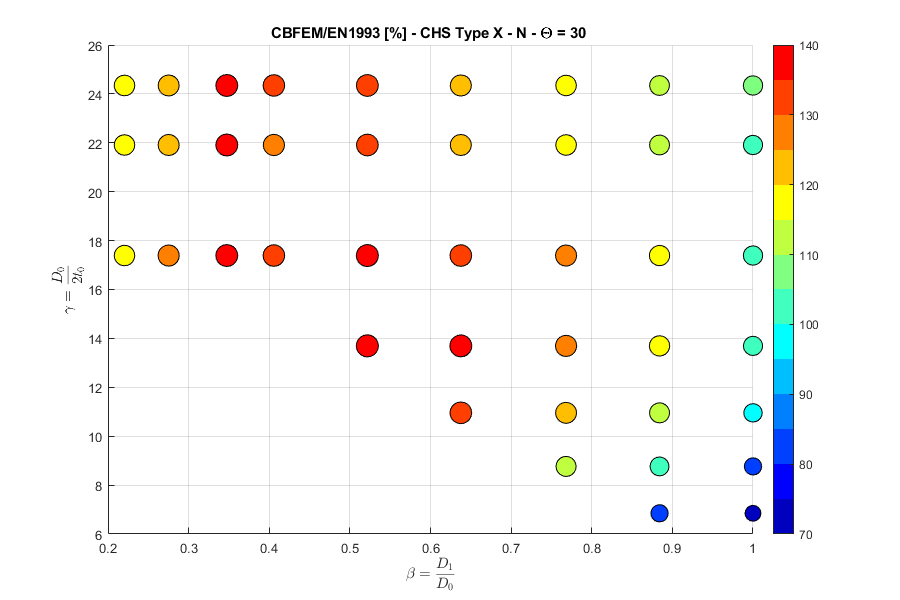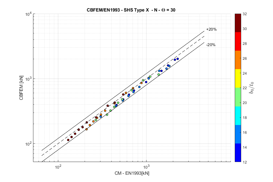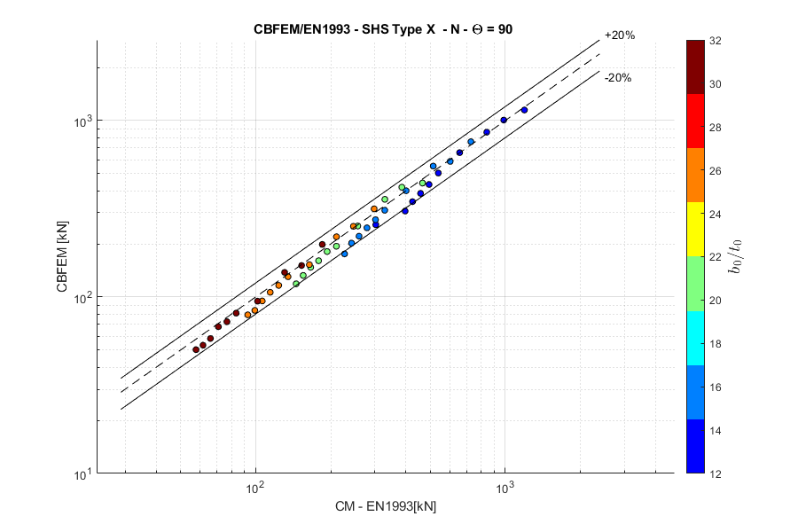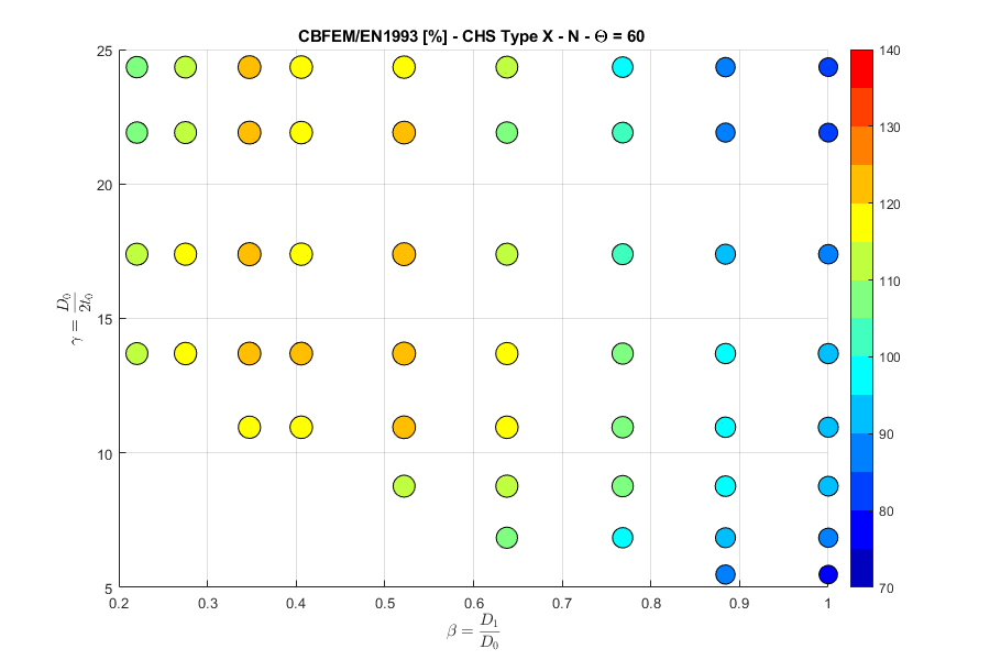 Load resistances of hollow section joints in the codes are determined by the Failure Mode Method that uses curve-fitting models determined from experiments and advanced numerical models. This design method is implemented in all codes. At the moment, the most recent state-of-the-art is in a draft of prEN 1993-1-8:2022. The real structure contains initial imperfections and residual stresses, which are not captured by shell models in IDEA StatiCa Connection. To achieve closer compliance with the results of codes, the influence of residual stress and initial imperfections was introduced in IDEA StatiCa models by reducing the bending resistance of shells of hollow sections with a high D/(2t) ratio. This allows to reduce the resistance of failure modes of joints but keep the normal and bending resistance of hollow section members. The reduction in plastic resistance of shell elements depends on the factor \(\gamma = \frac{D_0}{2t_0}\):