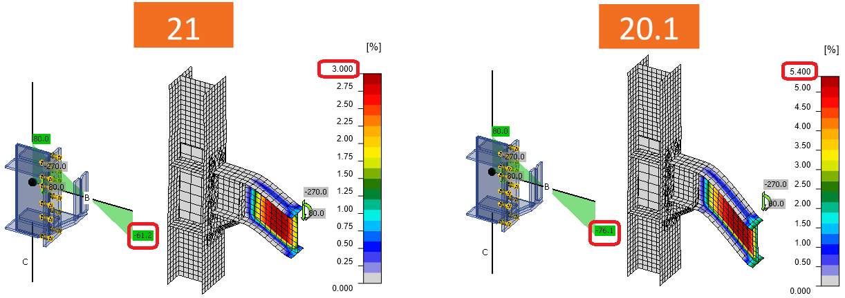 What are the main consequences? Some results change between versions, nevertheless, IDEA StatiCa runs a large number of automated tests. In the vast majority, the difference in results was below 1 %. However, in some cases, the differences are bigger. These cases are: