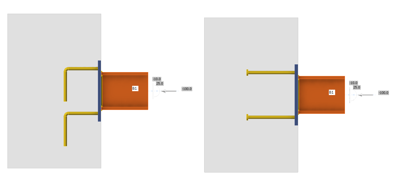 In case of higher load, the headed studs and reinforcement can be combined. This is practically modeled using the Fastener Grid or Contact operation.