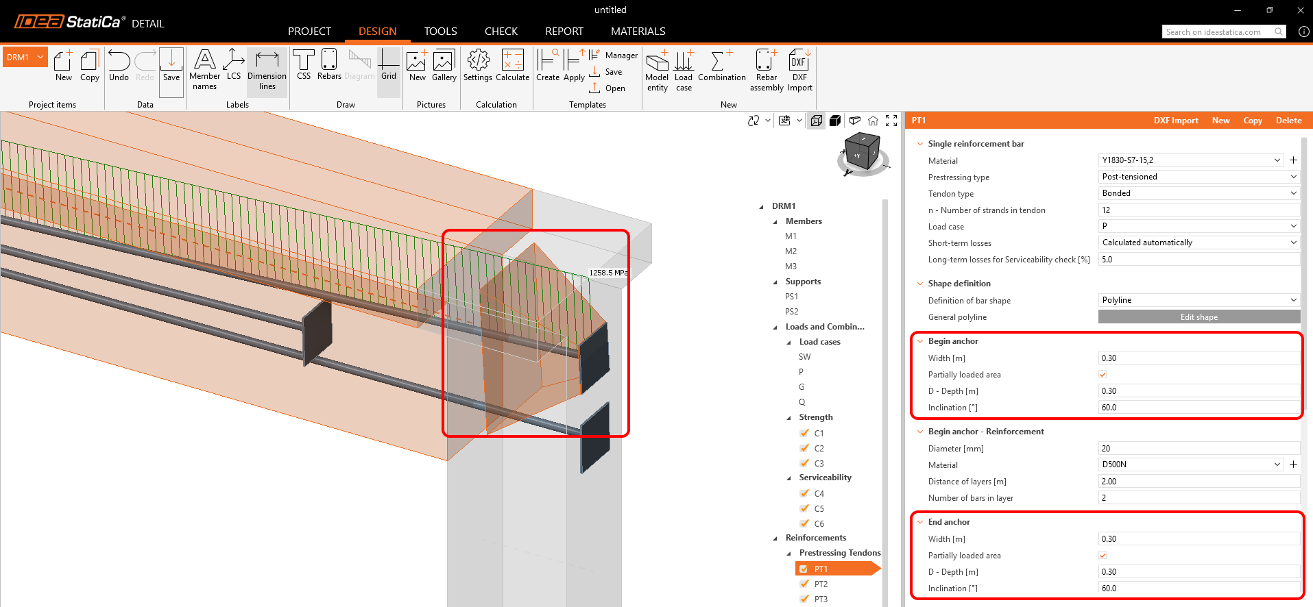 Prestressing has been fully implemented according to AS 3600:2018 in Detail 2D. A dedicated material database for wires, tendons, and bars has been added, along with project settings specific to prestressing such as stress increments, stress reduction, and design limits. The implementation includes anchorage zones and partially loaded areas with dispersion angles as defined by AS 3600, as well as a dedicated bond model for prestressing tendons.