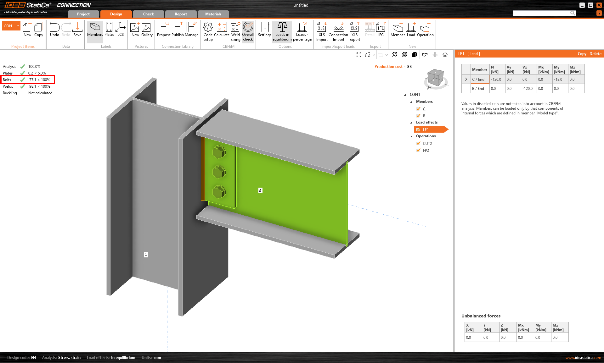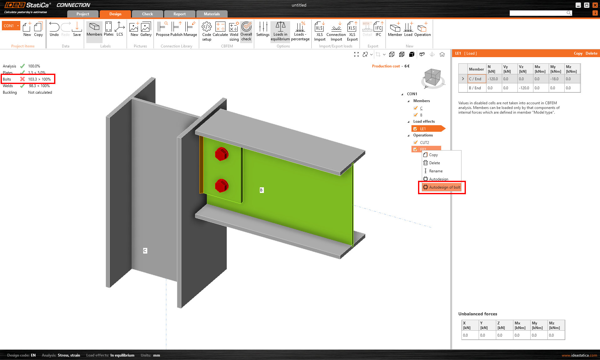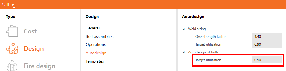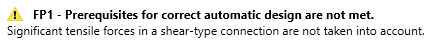 - If the tension utilization is high, autodesign could give inprecise results, and the user may receive a warning message. The autodesign is provided, but the results can be significantly influenced by tensile force in the bolts.