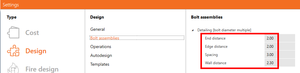 - Bolts in the operations have to be set with the bearing/shear interaction shear force type. Autodesign is not performed if bolts are set as friction and the user receives a warning message.