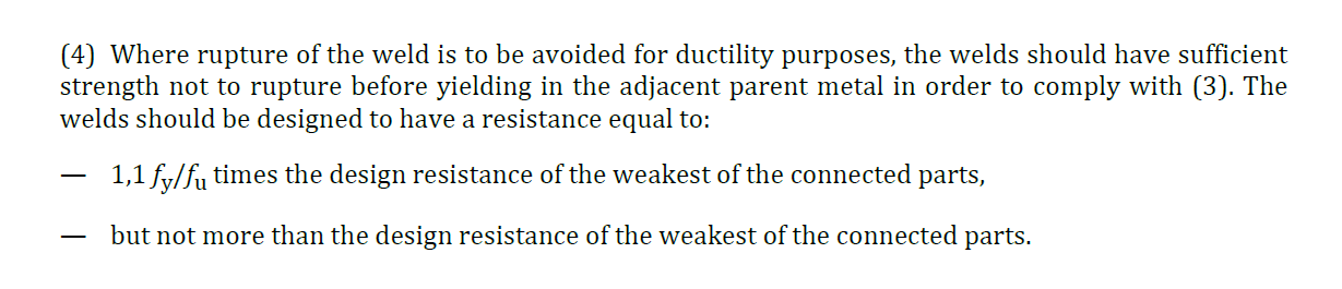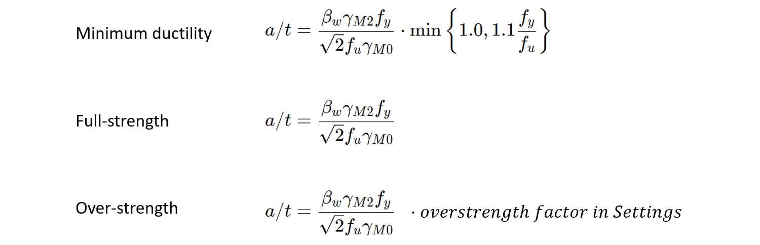Note: Weld sizing to minimum ductility is available for Eurocode (EN) only.