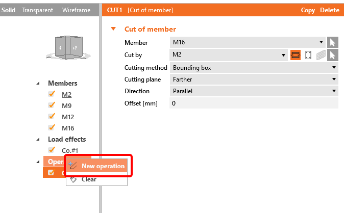 In the upper ribbon,  click on +Operation in the upper ribbon and add a New operation Cut.