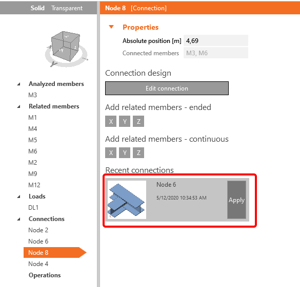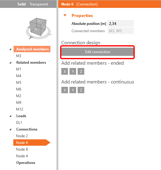 To get the analysis of the member, we first have to design all the joints along with the member. You can start with Node 2 when clicking on Edit connection.