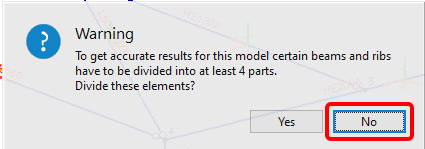 When running the nonlinear analysis, for simplification, do not divide elements according to the next picture.
