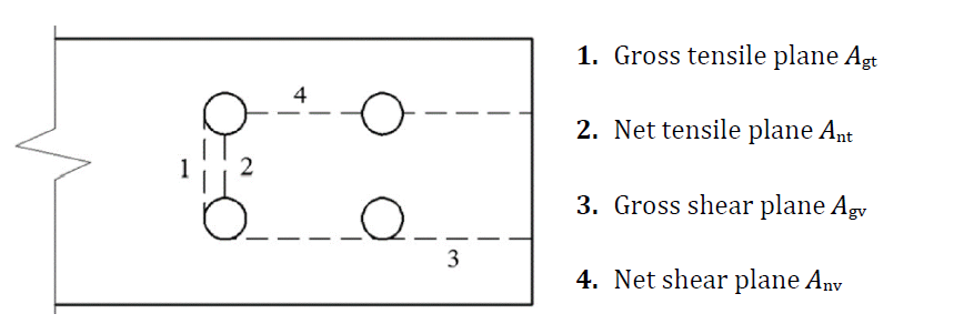\[ \textsf{\textit{\footnotesize{Fig. 5.6.1 Failure planes during the block shear failure}}}\]