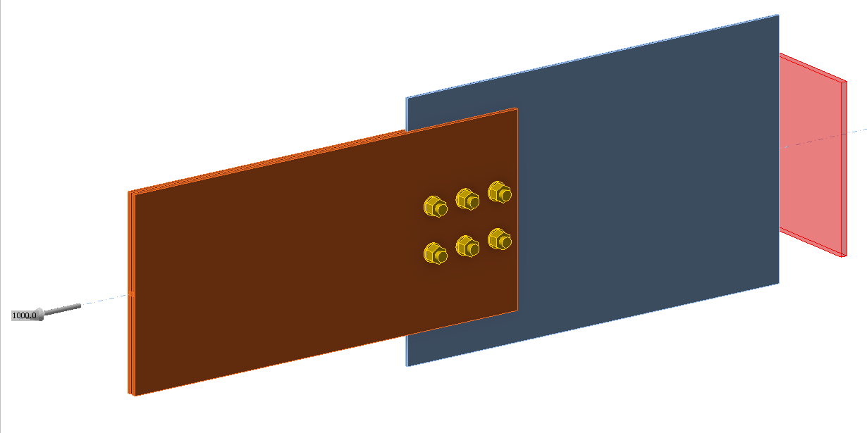 Design-oriented CBFEM model uses shell elements with rather coarse mesh. The mesh is predefined near bolt holes. Bolts are modeled as nonlinear springs which are connected to the nodes at the edges of the bolt’s holes by links. The bilinear material diagram with negligible strain-hardening is used for plates. The limit resistance of a group of bolts in bearing is determined when the plastic strain at the plate reaches 5 % (EN 1993-1-5: 2005). The bearing and hole tear-out resistances of each individual bolt are checked by formulas in appropriate code.