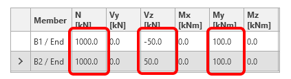 One load effect was automatically generated. Input the values of internal forces in the table for both members.