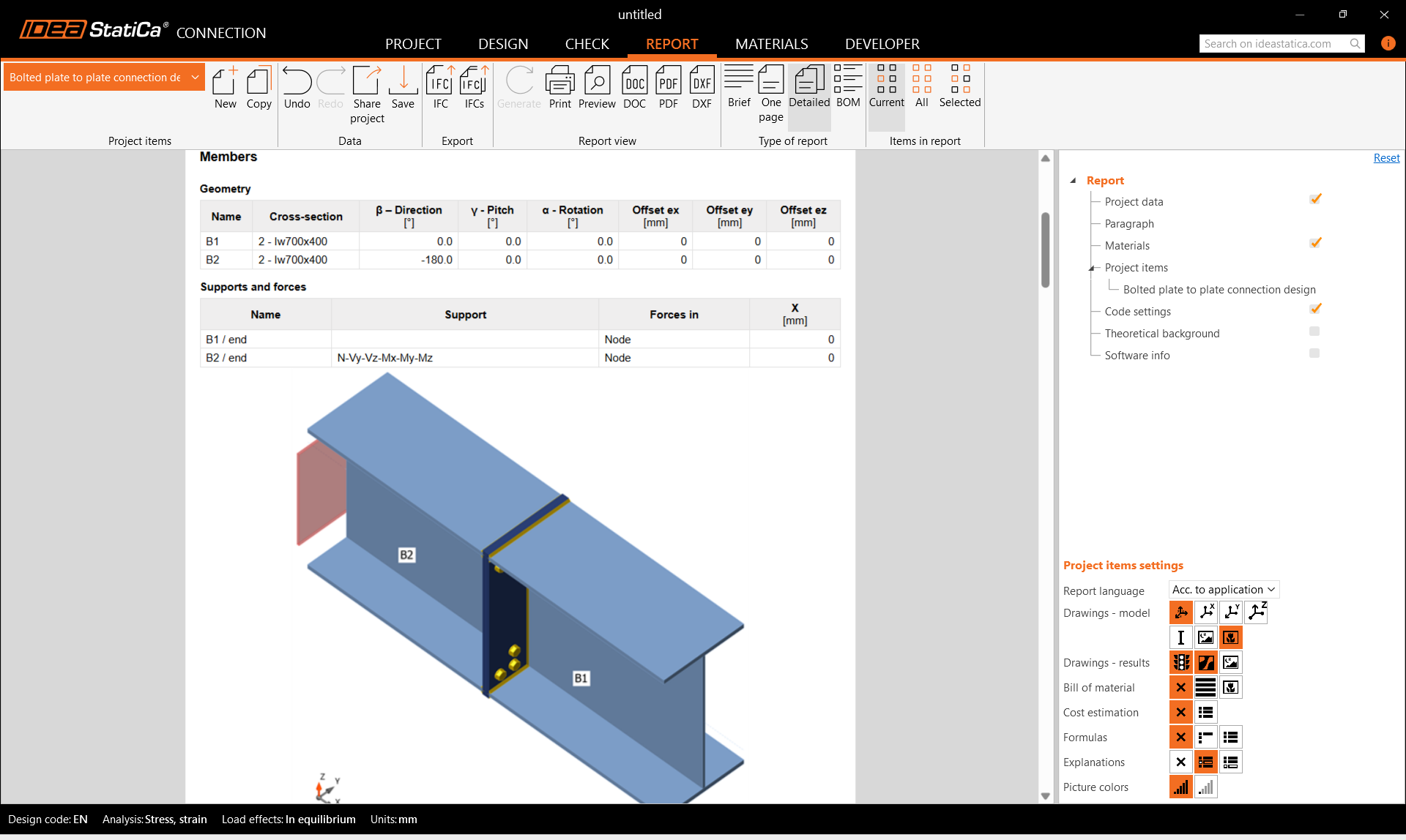 At last, you can review the Report. IDEA StatiCa offers a fully customizable report to print out or save in an editable format.